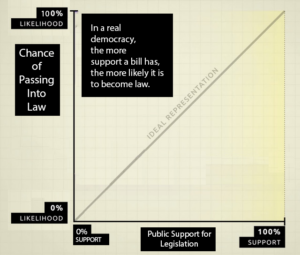 In a representative democracy, the more people support a bill, the more likely it becomes law.