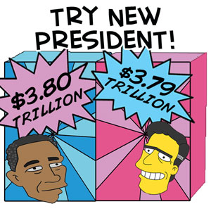 This is like arguing whether to order a large pizza or an extra-large pizza when your house is already buried under 16 trillion pizzas. The choice matters deeply to the pizza companies, though.
