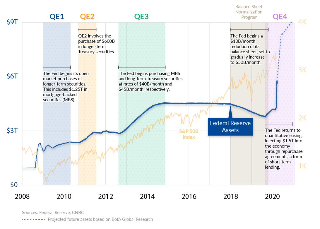 The solution: have the Federal Reserve print new money and buy the bad loans for way more than they were worth. This process is called quantitative easing (QE).