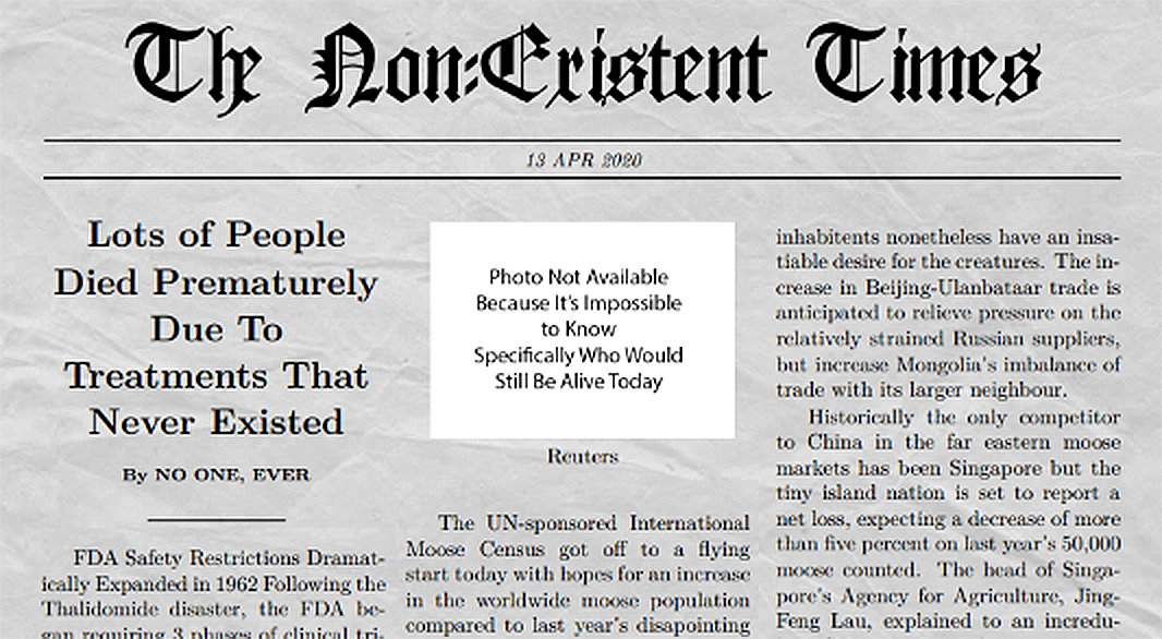 Here's a news story from the Non-Existent Times by No One Ever, featuring all the people who die from lack of access to treatments that might have existed: