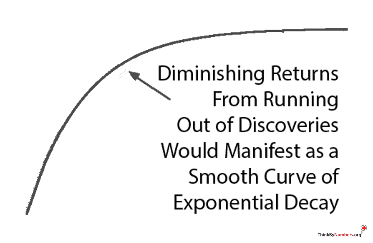 You might say "maybe we're just running out of easy medical discoveries." Diminishing returns are real. But diminishing returns produce exponential decay. A gradual curve downward.