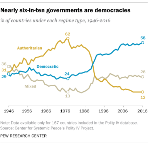 Over the last 60 years, democracies doubled. Autocracies got cut in half.
